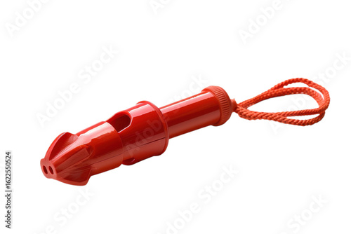 Bright red whistle with a sturdy cord for outdoor activities and safety signaling during sports events