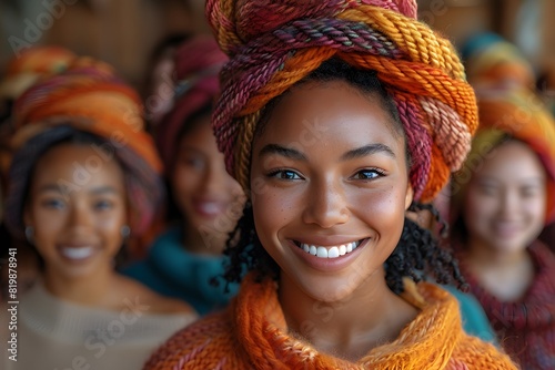bright, smiling, woman, colourful, threaded, friends, african, cultural, celebration, joyful, diverse, group, vibrant, cheerful, traditional, attire, headscarf, happy, textile, fashion, oneness, community, heritage, diversity, beauty, pride, ethnic, gathering, festive, knitwear, portrait, art