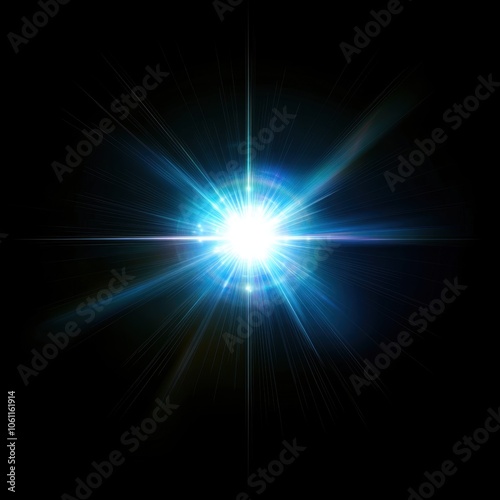 Bright star with lens flare isolated over black background