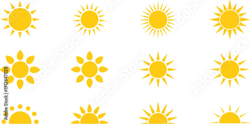 sun, icon, summer, vector, design, yellow, symbol, set, illustration, weather, sunlight, element, art, signs, collection, nature, sunshine, sunbeam, light, heat, pattern, sunny, orange, flower, sunrise