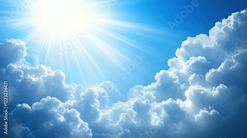 sun, cloud, sky, nature, light, bright, blue, weather, daytime, serene, outdoors, atmosphere, scenic, fluffy, landscape, sunshine, visual, clear, view, radiance, environment, beauty, calmness, summer, peaceful, horizon, day, sunlight, natural, sunbeam, cloudscape, scenery, weathering, vibrant