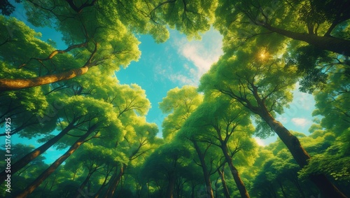 Bright Sunlight Filtering Through Tall Maple Trees in a Summer Landscape
