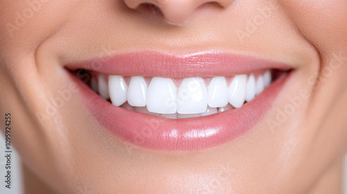 Bright White Smile Showcasing Healthy Teeth and Well-Defined Lips With a Natural Glow in a Close-Up Portrait Taken Indoors