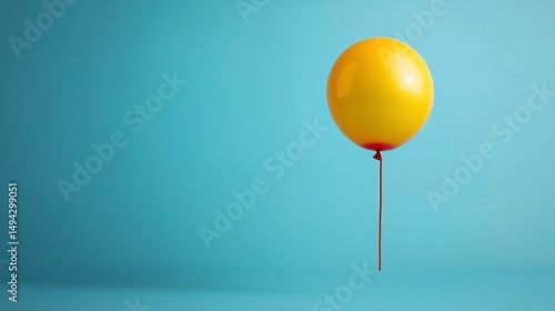 Bright Yellow Balloon Against Soft Blue Background, Capturing Attention with Light and Playful Vibes, Perfect for Creative Projects