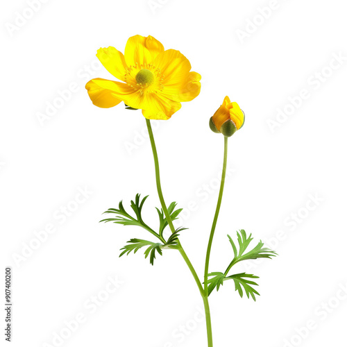 flower, botanical, yellow, green, leaf, plant, nature, bloom, blossom, flora, garden, stem, vibrant, isolated, black, background, closeup, natural, organic, bright, fresh, spring, summer, beauty, delicate, elegant, floral, growth, wildflower, colourful, high-coloured, detailed, macro, single, stemmed, botany, horticulture, ornamental, foliage