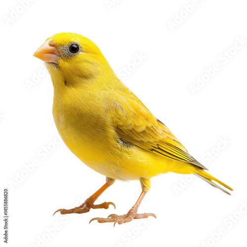 Bright yellow canary perched elegantly, showcasing vibrant feathers and curious demeanor in serene indoor setting