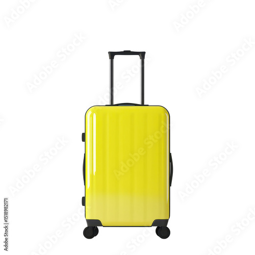 yellow, suitcase, baggage, carry-on, travel, bright, vibrant, shiny, glossy, wheel, handle, retractable, upright, case, baggage, journey, vacation, trip, holiday, aerodrome, transport, mobility, roller, smooth, modern, contemporary, stylish, elegant, compact, portable, convenient, functional, hard-wearing, accurateness, safe, secure, lightweight, strong, plastic, geometric, vertical, line, front, view, isolated, background, object, item