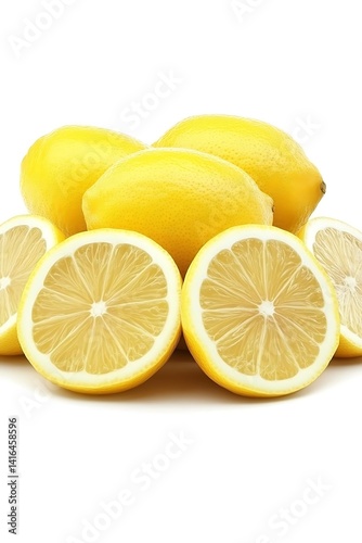 Bright Yellow Citrus Fruits on White Background, Fresh Lemons Still Life
