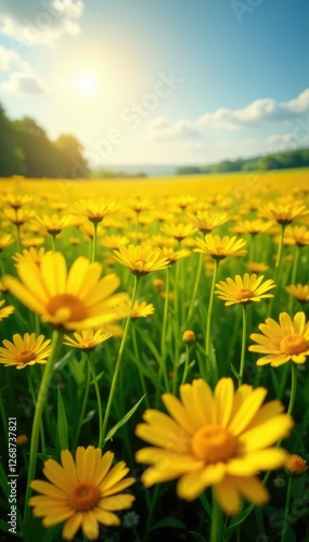 bright yellow daisy fields stretching towards the sky, daisies, summer, garden