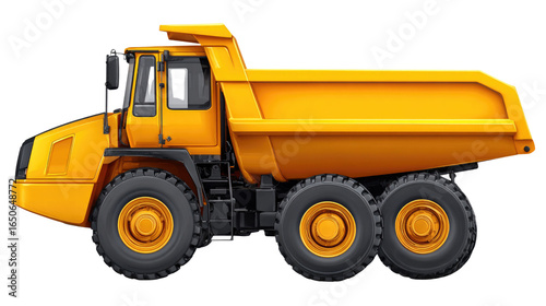 Bright Yellow Dump Truck Side View on a White Background Ideal for Construction and Heavy Machinery Projects