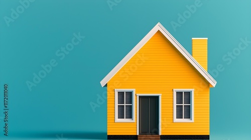 Bright Yellow House Model with Clean Lines and Simple Design Set Against a Vibrant Teal Background