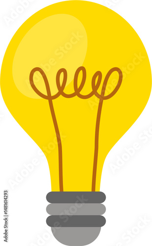 Bright Yellow Light Bulb, Idea Concept Illustration, Simple Design.
