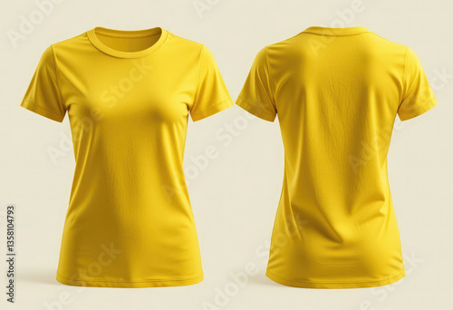 yellow, t-shirt, woman, cotton, plain, fashion, apparel, clothing, outfit, clothes rack, trendy, casual attire, stylish, soft, fabric, comfortable, modern, minimalist, vibrant, bright, classic, design, blank, template, front, back, hi-res, studio, photo, retail, catalog, merchandise, advertisement, e-business, showcase, realistic, model, sleeve, wear, female, shirt, mock, woman, girl, textile, advertising, body, empty