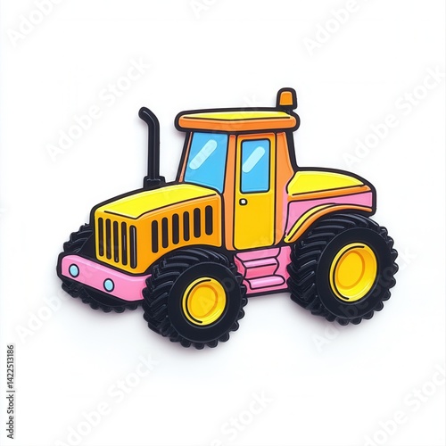 Brightly Colored Cartoon Tractor with Big Tires and Bold Design for Children's Illustrations and Education Resources