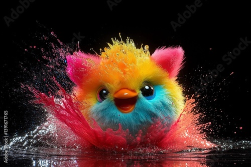splash, toy, animal, paint, bright, black, background, dye, furry, creature, colourful, splash, magical, imaginative, night, cute, creative, explosion, whimsical, fantastic, fantasy, adorable, character, high-coloured, colours, playful, design, unique, round, eye, fun, soft, fur, cheerful, visual, charming, lively, critter, joyful, expressive, digital, effect, delightful, modern, visually, stunning, dynamic, surreal