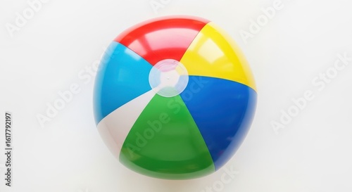 beach ball, inflatable, toy, summer, vacation, pool, ocean, beach, fun, play, activity, game, round, ball-shaped, colourful, many-coloured, bright, vibrant, plastic, striped, pattern, isolated, white background, studio shot, closeup, topview, object, recreation