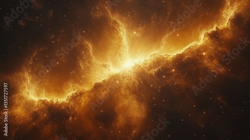 Brilliant golden cosmic nebula shining brightly among scattered starlight