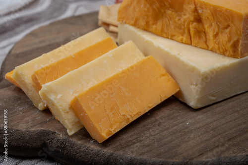British cheeses collection, Scottish coloured and English matured cheddar cheeses
