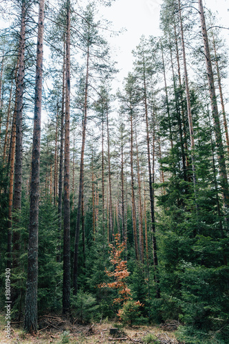 Broadleaf tree among confers