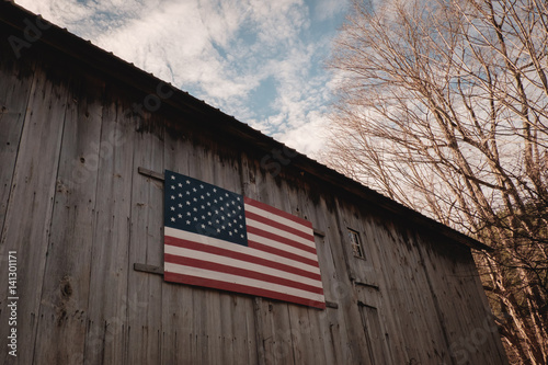 vermont, american, barn, cloud, flag, sky, tree, winter