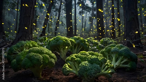 Broccoli Forest – Broccoli heads turned into massive trees with tiny people walking through the “forest,” glowing fireflies all around 4