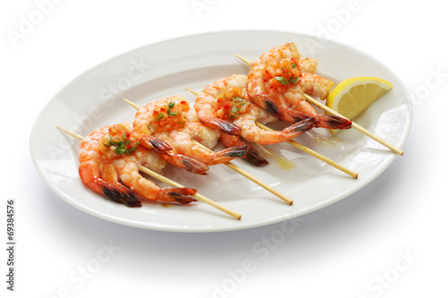 grilled, shrimp, skewer, tapas, spanish food, prawn, bar, basque, buffet, closeup, cooking, cookery, dinner, dish, food, finger food, gamba, gastronomy, isolated, party food, seafood, snack, spain, spanish, starter, toothpick, white background