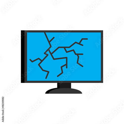 Broken computer. Crack on display PC. Vector illustration