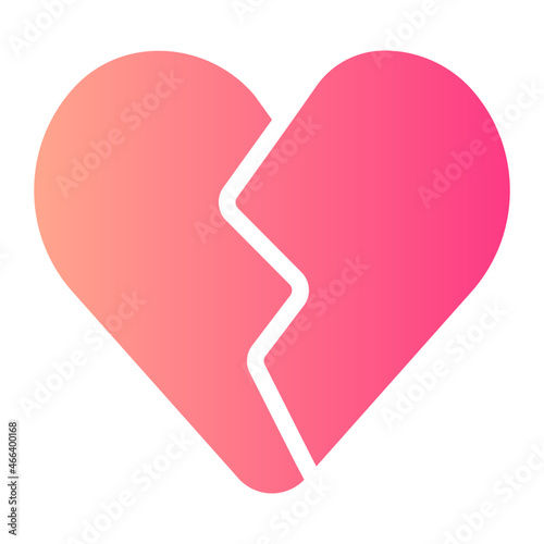 broken heart, romantic, love, heartache, shape, sad, icon, gradient, flat, graphic, illustration