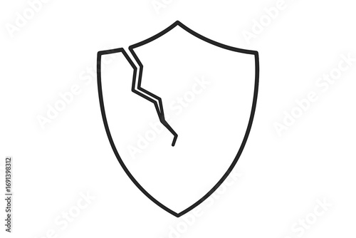 shield, cracked, broken, icon, security, protection, vulnerability, risk, unprotected, insecure, bankruptcy, danger, attack, breach, weak, damaged, symbol, vector, cyber, datum, defense, error, loss, problem, safety, defeat, shattered, outline, isolated, illustration, concept, alert, warning, system, privacy, guard, unsafe, threat, minimal, simple