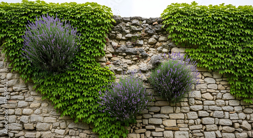 Broken Wall Covered in Ivy and Lavender