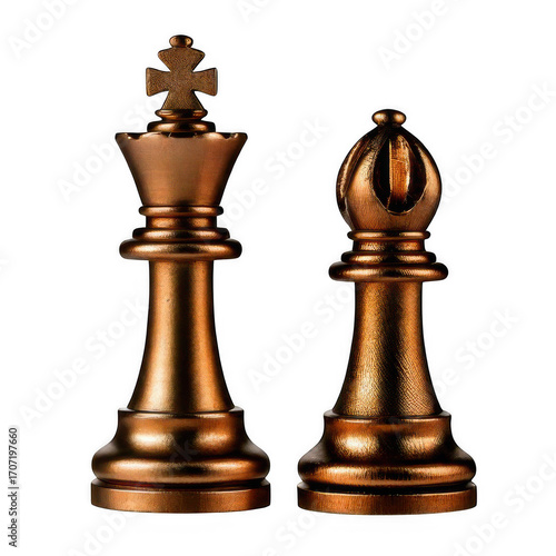 bronze chess pieces king or queen figur isolated on white or transparent.