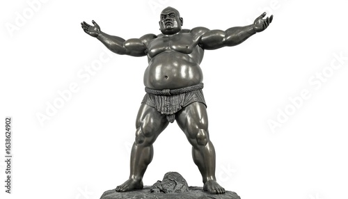statue, bronze, sumo, wrestler, figure, muscular, large, powerful, ancient, standing, strong, isolated, art, sculpture, metal, pose, celebration, sport, display, figurine, decorative