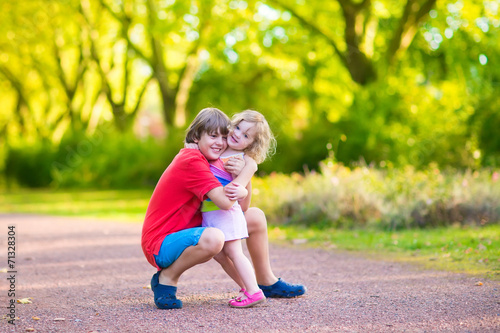 Brother and sister in a park