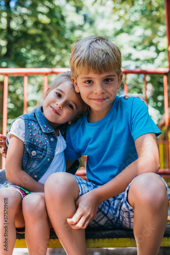 sibling, toddler, affection, 2, adorable, togetherness, summer, smiling, sister, relative, posing, portrait, people, park, outside, outdoors, love, little, lifestyle, leisure, children, joy, hug, happiness, girl, fun, family, cute, childhood, children, caucasian, brother, boy, youth, blond, young, beautiful, vertical, white, female, person, children, children, youth, youngster, youngster, minor, male
