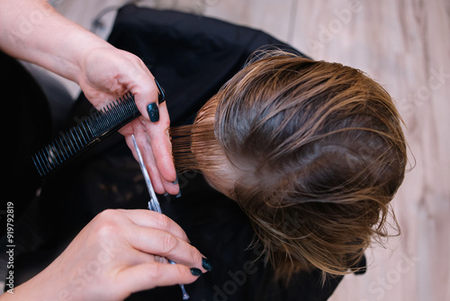 hair, woman, beauty, hairdresser, coiffure, fashion, people, hand, face, style, head, salon, barber, care, model, hairdresser, person, hand, haircut, comb, coiffure, cutting, closeup, brown, lady