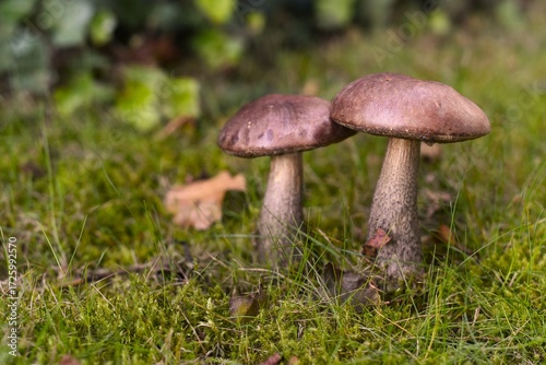Brown birch bolete leccinum scabrum. A mushrooms captured growing in a private garden.