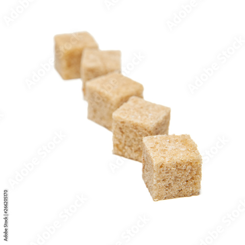 Brown cane sugar cubes isolated on white