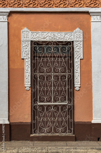 Brown door of a colonial house in Trinidad, Cuba