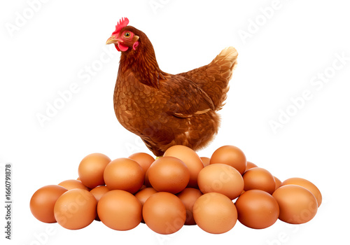 Brown Hen with Fresh Brown Eggs: Farm Fresh Poultry Isolated on Transparent Background