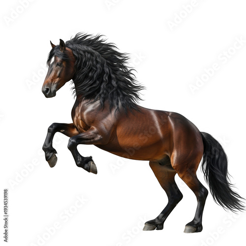 Brown horse rearing up black mane tail powerful animal equestrian mammal stallion wild equine isolated png cutout