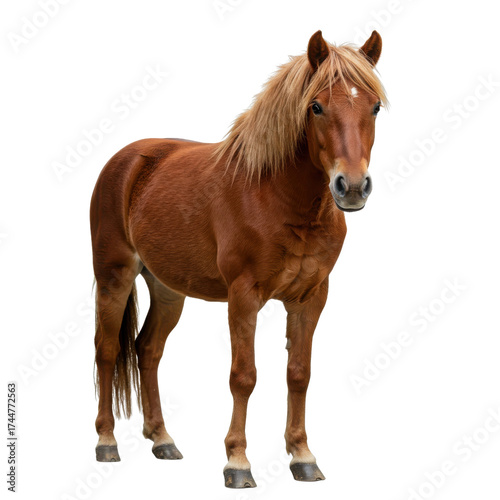 horse, isolated, white background, pony, animal, equine, farm animal, mammal, brown, chestnut, standing, full body, cut-out, studio shot, farm animal, equestrian, riding, nature, agriculture, strength, beauty, freedom, education, wildlife, design, banner, object, clipping path, composition, template, digital artwork