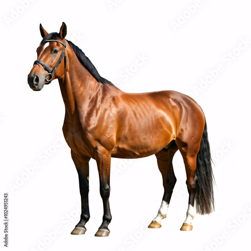 brown horse standing isolated on white background