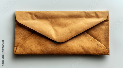 Brown kraft envelope on white background, simple mail correspondence, flat lay, minimal design, for communication concept.