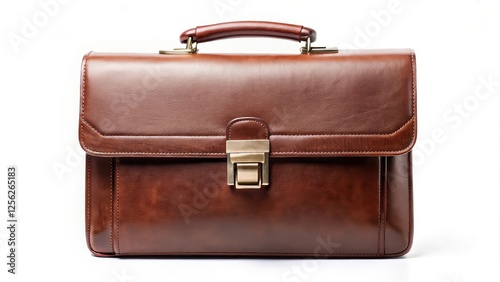 briefcase, leather, brown, bag, baggage, portfolio, case, handle, clasp, texture, smooth, matte, isolated, white, background, studio, photo, object, product, fashion, accessory, business, professional, classic, vintage, style, elegant, detail, craftsmanship, closeup, view, front, top, design, satchel, compartment, zip, hardware, metal, work, office, carry, travel, storage