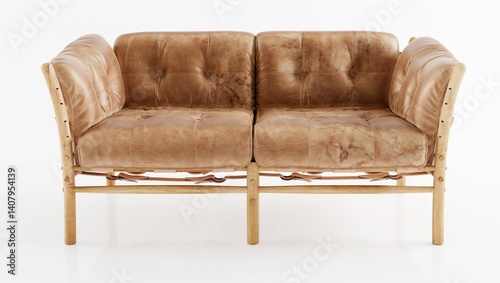 Brown leather sofa furniture, isolated on white background, 3d illustration