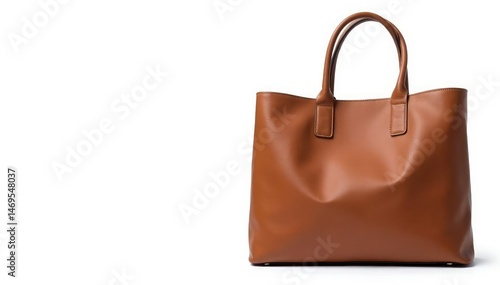 Brown leather tote bag, isolated on white background , tote bag, isolated, white background