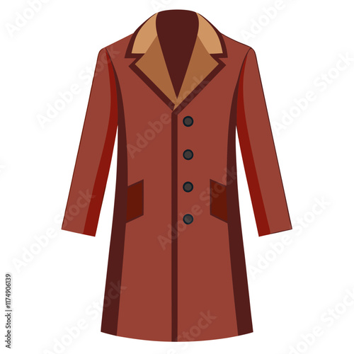 Brown overcoat with beige lapels-Flat vector illustration of a brown overcoat featuring beige lapels, front pockets, and a three-button closure for a classic, elegant style.