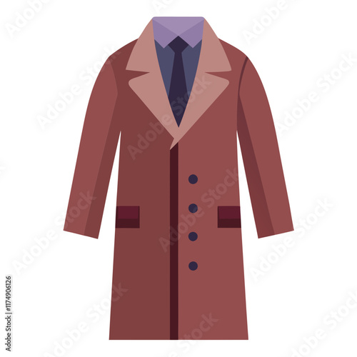 Brown overcoat with pink lapels and pockets-Flat vector illustration of a brown overcoat featuring pink lapels, maroon pockets, and a formal three-button design, ideal for elegant occasions.