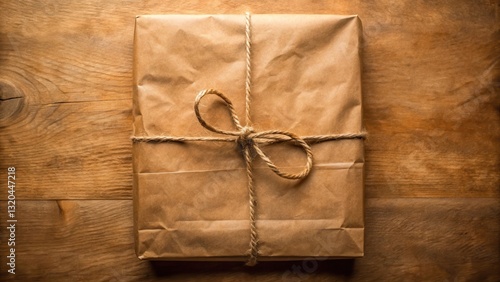 Brown paper bag with kraft paper texture and twine tied at the top, kraft paper, brown paper
