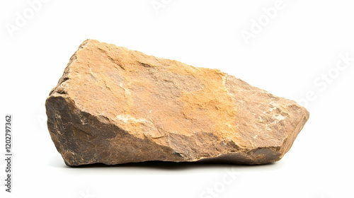 Brown rough rock isolated on white background; geology, texture, construction